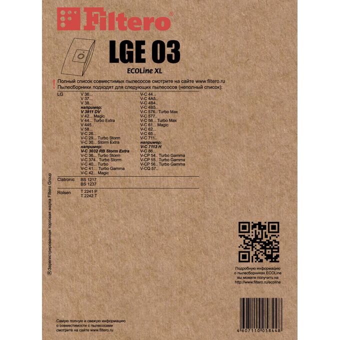 Мешки-пылесборники Filtero LGE 03 ECOLine 10 штук + микрофильтр.