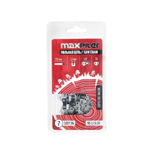Удобная и легкая в применении пильная цепь. Подходит для различных распиловочных работ. Выполнена из высококачественных материалов, что повышает ее износостойкость. Цепь MaxPiler помогает сделать ровный и чистый рез, повышает скорость и производительность работы. Способствует снижению отдачи. Обратите внимание, для увеличения срока службы и лучшего качества работ, мы советуем регулярно смазывать цепь.