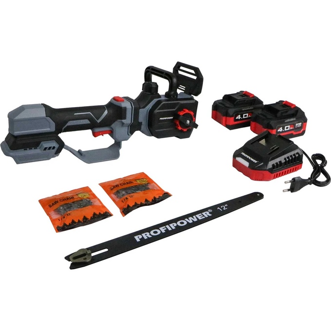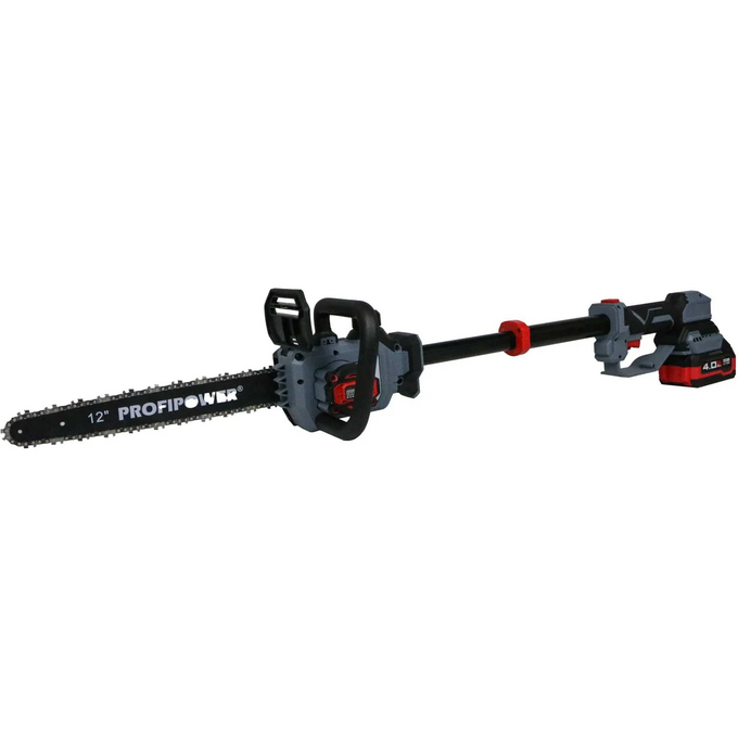 Цепная пила аккумуляторная PROFIPOWER PL-12 (E0285) с штангой телескопической 20В, 12", Li-ion-2шт, 4.0Ач, 0-5800 об/мин, З/У, в коробке