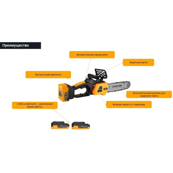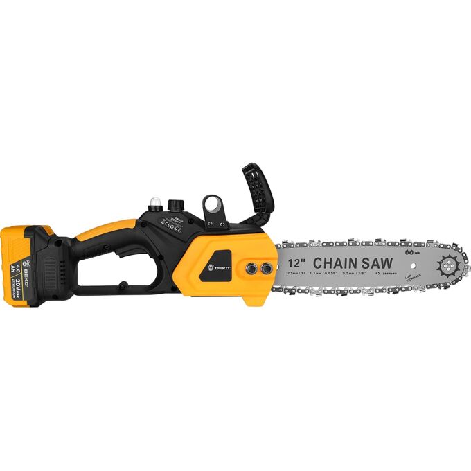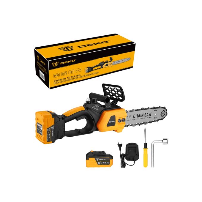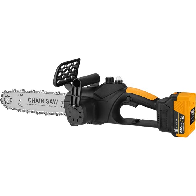 Пила цепная аккумуляторная DKCHS 20 2x4.0Ah применяется при работе в мастерской или в саду для распиливания различных материалов. Предназначена для пропилов в древесине и пластмассе. Инструмент работает от литий-ионного аккумулятора.