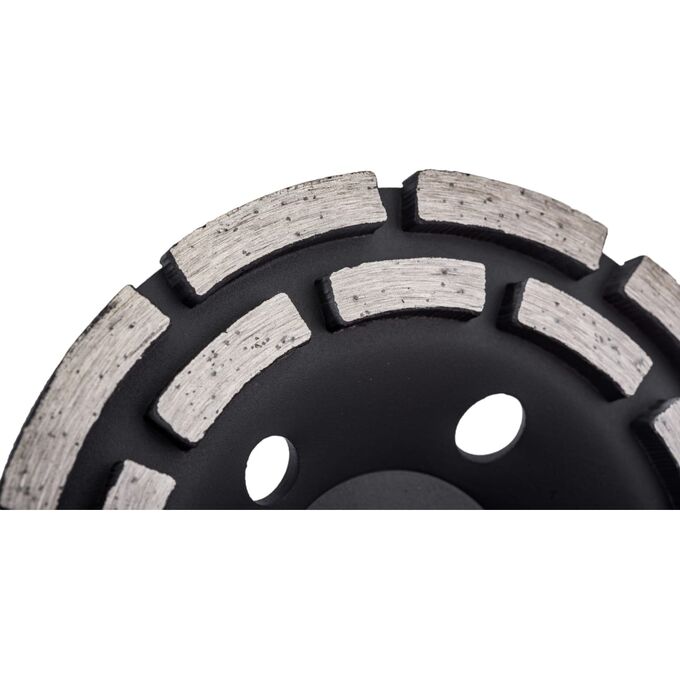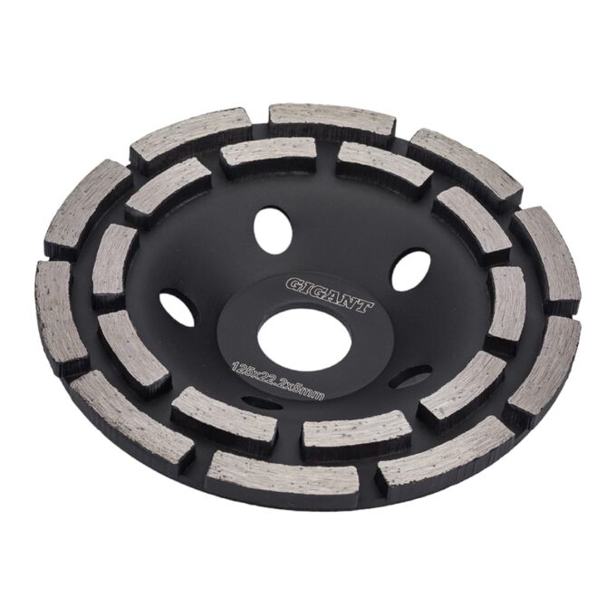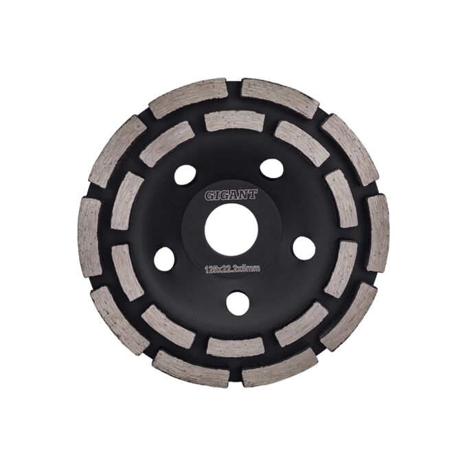 Чашка алмазная двухрядная Gigant G-1009 предназначена для угловых шлифовальных машин. Применяется для шлифования поверхностей из бетона, гранита и искусственного камня. Двойная сегментированная поверхность чашки не требует водяного охлаждения во время работы.