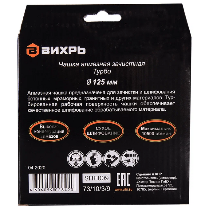 Чашка алмазная зачистная Вихрь 73/10/3/9, 125мм, Турбо