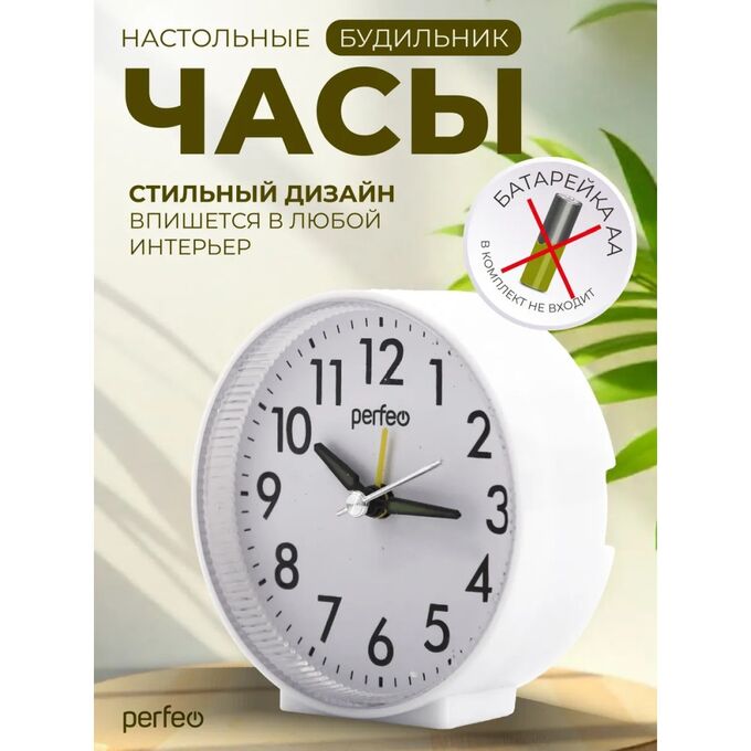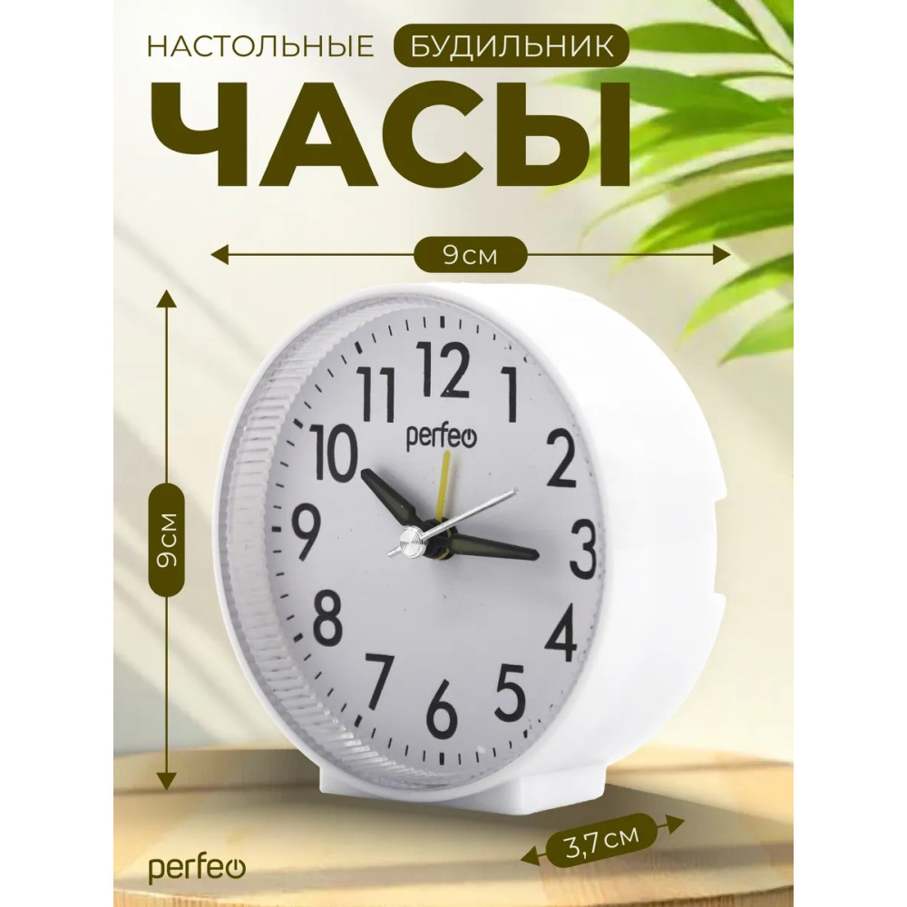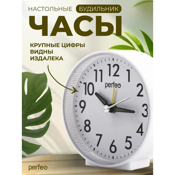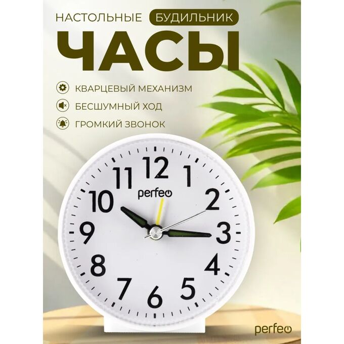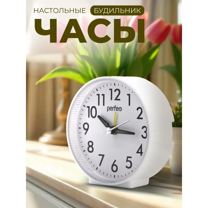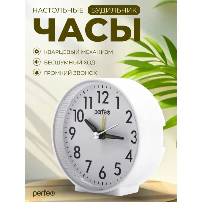 Часы-будильник Perfeo "PF-TC-023", круглые, белые, (Арт. PF_E1973)