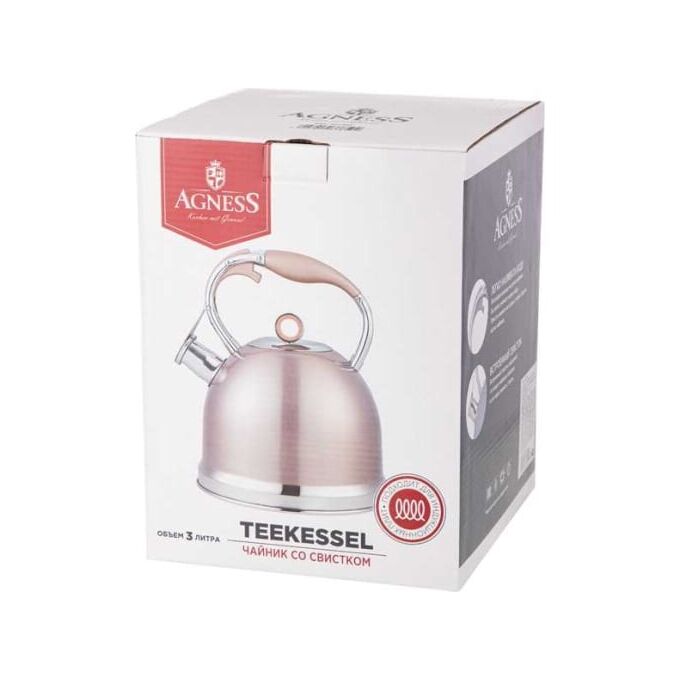 Чайник AGNESS – это надежность, функциональность и стильный дизайн. Чайник выполнен из нержавеющей стали - наиболее прочного и гигиеничного материала.