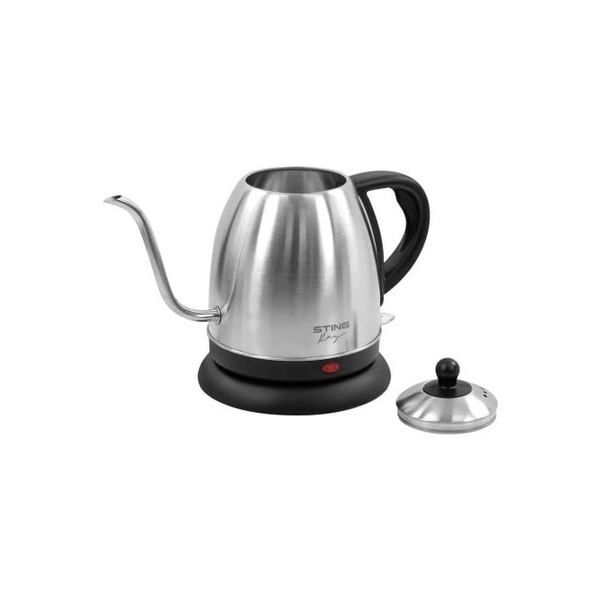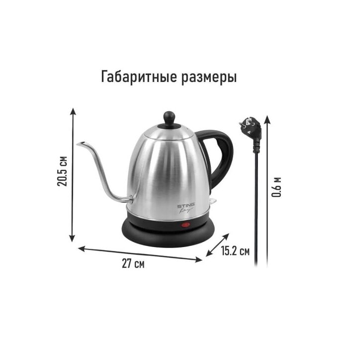 Чайник металлический STINGRAY ST-KT3014A черного цвета представляет собой надежное и функциональное устройство для быстрого кипячения воды. Его объем составляет 1.2 литра, что делает его удобным для использования в небольших семьях или офисах. Мощность в 1800 Вт обеспечивает быстрое нагревание воды до 100 градусов, а закрытый нагревательный элемент защищает от накипи и облегчает уход за прибором. Корпус из пластика и металла сочетает в себе прочность и современный дизайн, а стальной и черный цвета придают ему стильный вид. Чайник оснащен съемной крышкой для удобного наполнения и чистки, а также имеет защиту от включения без воды, что повышает безопасность использования. Вращение на подставке позволяет легко устанавливать чайник в любом положении, а LED-индикатор работы информирует о процессе нагрева.