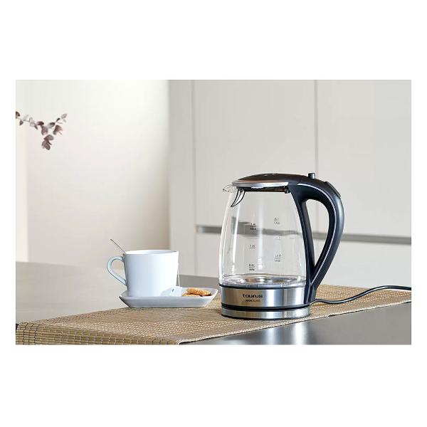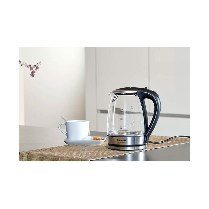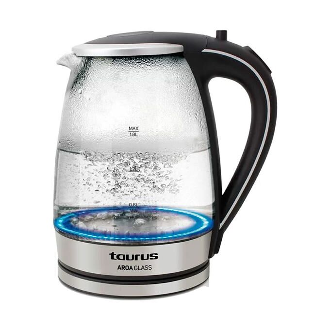 Стеклянный кувшин Taurus Aroa Glass объемом 1,8 литра оснащен светящимся индикатором воды на дне. Идеальная функция, чтобы иметь возможность вскипятить желаемое количество воды в любое время. Стеклянный чайник Taurus Aroa имеет основание из нержавеющей стали с возможностью вращения на 360º, что позволит вам удобно держать его в любом месте и под любым углом благодаря мобильной базе. Выделяющаяся деталь — автоматическое отключение при закипании воды — идеальная функция. Всегда знайте количество воды в баке чайника благодаря видимой шкале уровня воды.