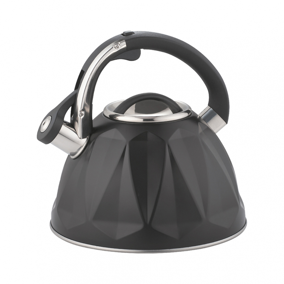 Чайник изготовлен из высококачественной нержавеющей стали, которая чрезвычайно устойчива к коррозии, воздействию разного рода кислот и щелочей (не окисляется). Благодаря ей чайник надолго сохранит отменные эксплуатационные характеристики и прекрасный внешний вид. Специальный курковый механизм позволяет легко открывать насадку-свисток одним нажатием кнопки на ручке чайника.