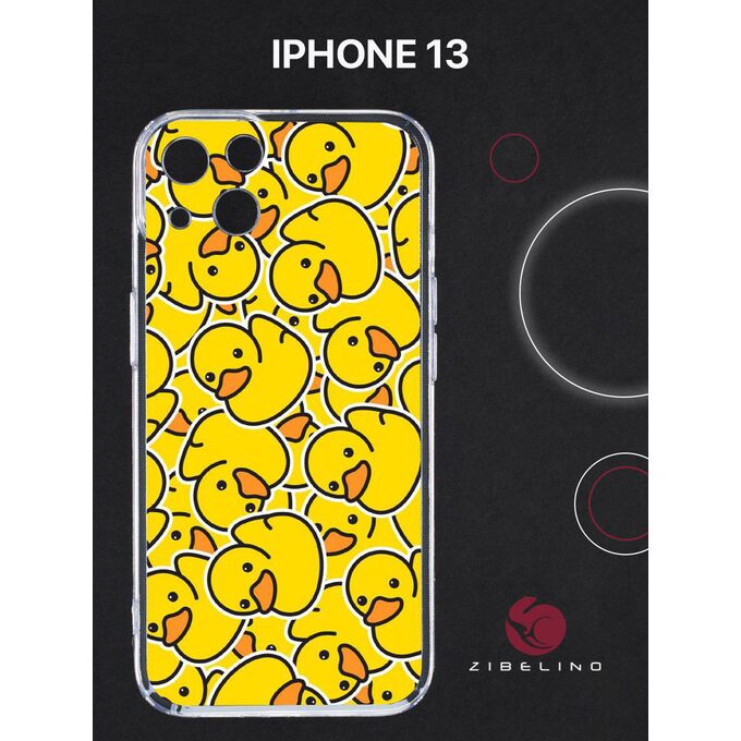 Чехол накладка силиконовый для Apple iPhone 13 прозрачный с рисунком, с защитой камеры, с принтом УТКА ПРИНТ (Айфон 13)