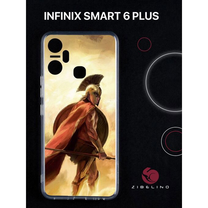 Чехол для Infinix Smart 6 Plus с защитой камеры, прозрачный с принтом ГЛАДИАТОР (Инфиникс Смарт 6 Плюс)