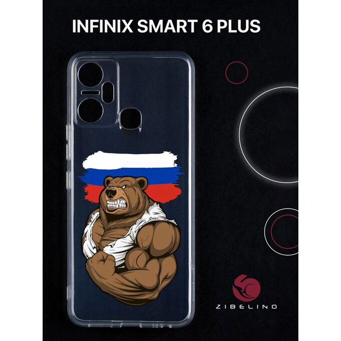 Чехол для Infinix Smart 6 Plus с защитой камеры, прозрачный с принтом РОССИЯ СИЛА (Инфиникс Смарт 6 Плюс)