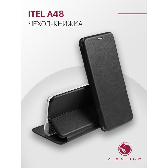 Чехол книжка Book для Itel A48 противоударный, с магнитом, черный (Ител А48)