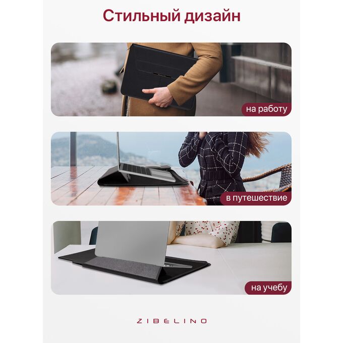 - Крышка сумки для ноутбука надежно закрывается на магнитную застежку, предотвращая случайное выпадение ноутбука.