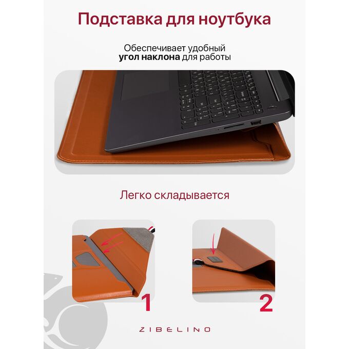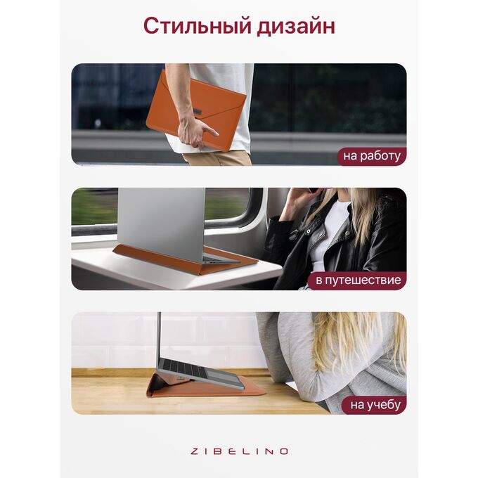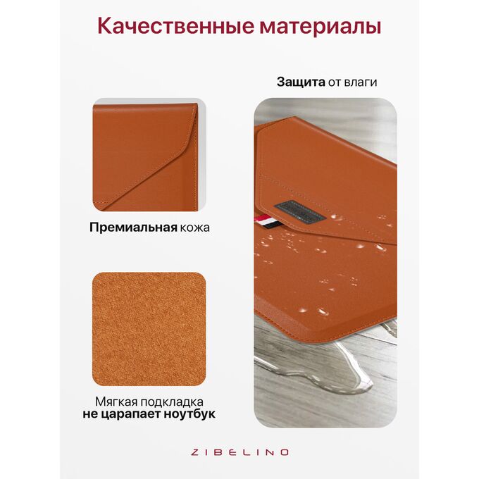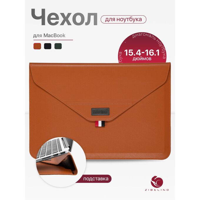 Чехол для ноутбука для MacBook Pro, Air, и планшетов Samsung, Xiaomi, KENSHI, Tecno, Teclast, Lenovo (диагональ 15.4-16.1") с регулируемой подставкой, с застежкой на липучке, коричневый (сумка портфель для макбука)