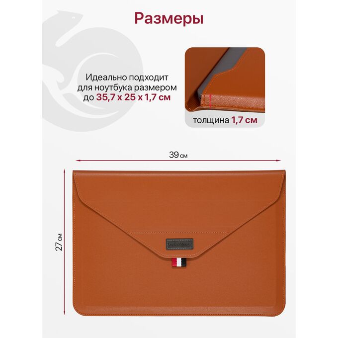 - Качественные и долговечные материалы. Папка для ноутбука изготовлена из износостойкой и приятной наощупь экокожи.