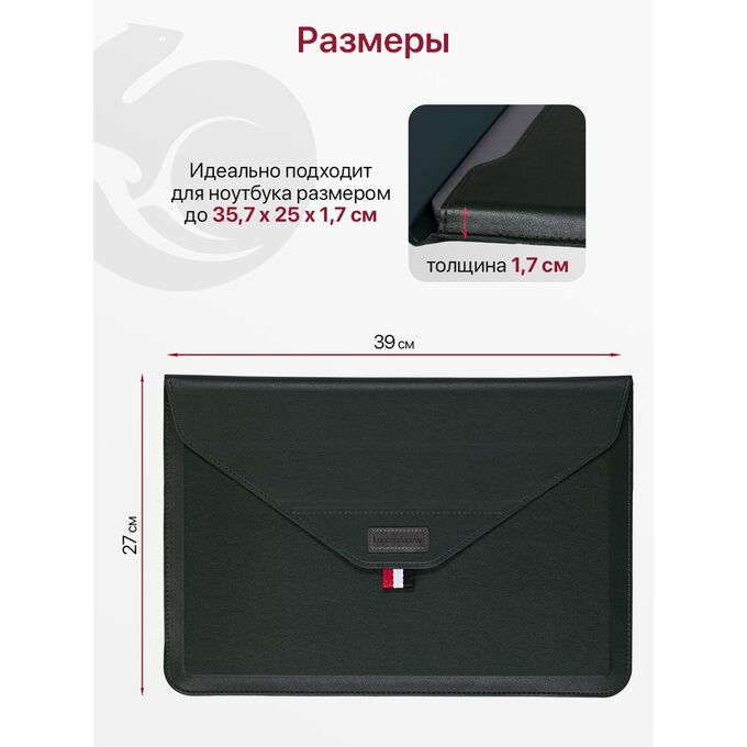 - Качественные и долговечные материалы. Папка для ноутбука изготовлена из износостойкой и приятной наощупь экокожи.
