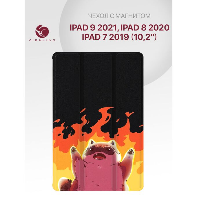 Чехол для планшета Apple iPad 9 2021, iPad 8 2020, 7 2019 (10.2") с рисунком, с магнитом, черный с принтом ЕНОТ ОГОНЬ (Эпл Айпад 9 2021 8 2020, 7 2019)