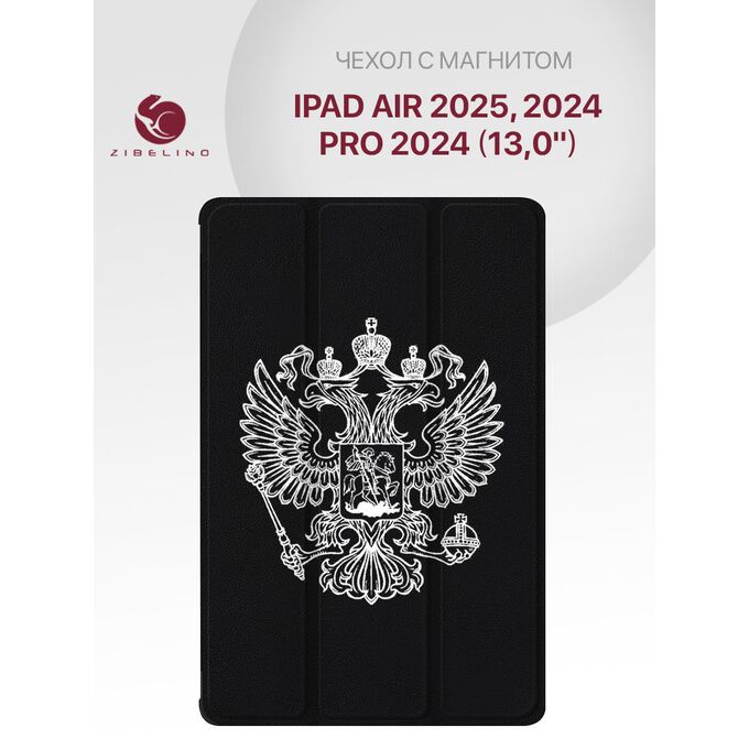Чехол для планшета Apple iPad Air 13" 2025 (M3), iPad Pro 13" (M4) 2024, iPad Air 13" 2024 (M2) (13.0") с рисунком, с магнитом, черный с принтом БЕЛЫЙ ГЕРБ (Айпад Про 13 Аир)