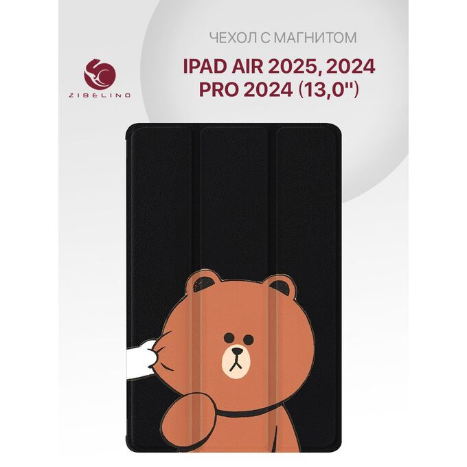 Чехол для планшета Apple iPad Air 13" 2025 (M3), iPad Pro 13" (M4) 2024, iPad Air 13" 2024 (M2) (13.0") с рисунком, с магнитом, черный с принтом МИШКА ЩЕКА (Айпад Про 13 Аир)