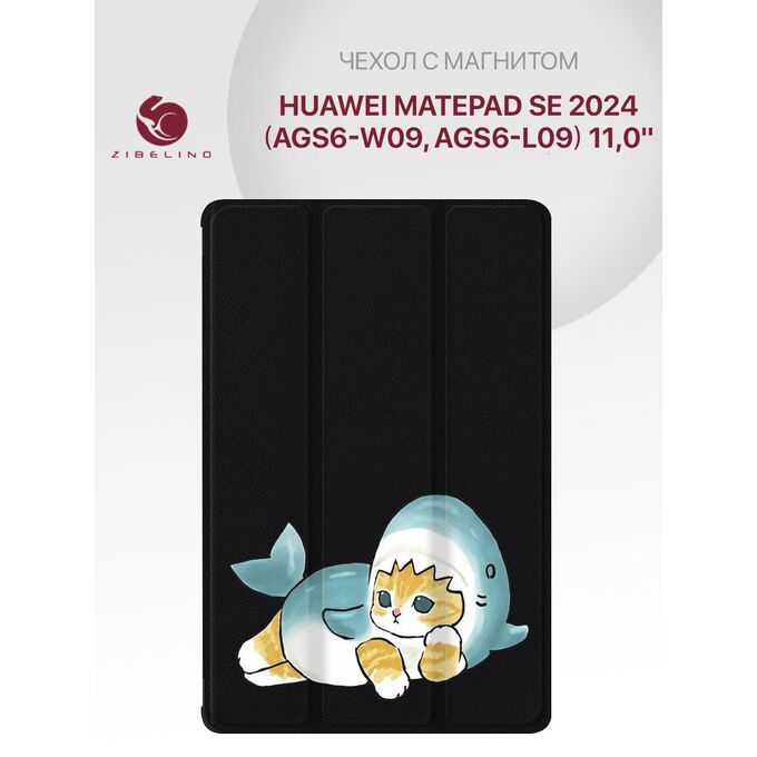 Чехол для планшета Huawei MatePad SE 2024 (11.0" ) (AGS6-W09, AGS6-L09) с рисунком, с магнитом, черный с принтом КОТИК АКУЛА (Хуавей Мате Пад SE 11.0" 2024)