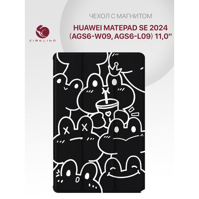 Чехол для планшета Huawei MatePad SE 2024 (11.0" ) (AGS6-W09, AGS6-L09) с рисунком, с магнитом, черный с принтом ЛЯГУШЕЧКИ (Хуавей Мате Пад SE 11.0" 2024)
