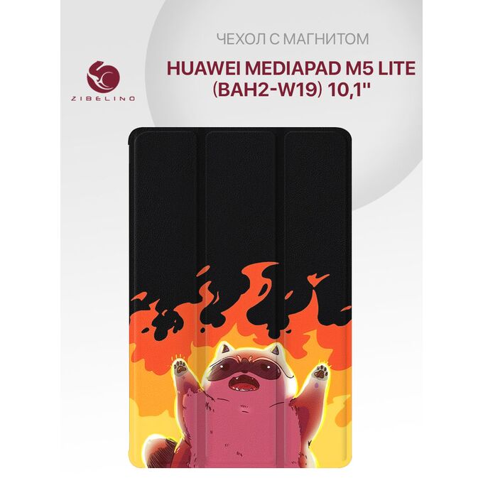 Чехол для планшета Huawei MediaPad M5 Lite (10.1'') (BAH2 W19) с рисунком, с магнитом, черный с принтом ЕНОТ ОГОНЬ (Хуавей МедиаПад М5 Лайт)