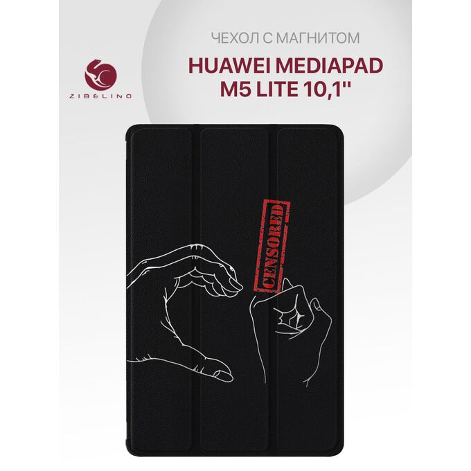 Чехол для планшета Huawei MediaPad M5 Lite (10.1'') с рисунком, с магнитом, черный с принтом РУКИ ЦЕНЗУРА, Хуавей Медиа Пад М5 Лайт