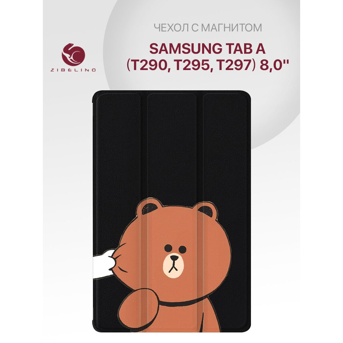 Чехол для планшета Samsung Tab A (8.0'') (T290 T295 T297) с рисунком, с магнитом, черный с принтом МИШКА ЩЕКА (Самсунг Таб А 8.0)