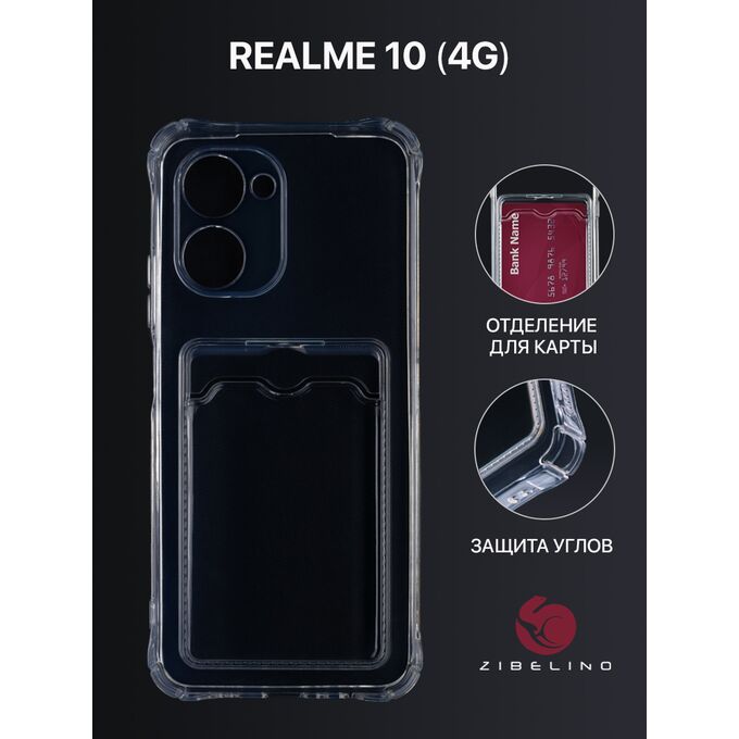Чехол силиконовый Card Holder для Realme 10 (4G) с картхолдером и защитой камеры, прозрачный (Реалми 10)