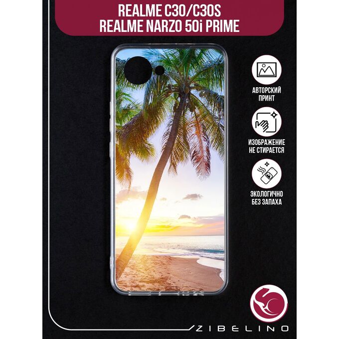 Чехол для Realme C30 4G, Narzo 50i Prime с защитой камеры, прозрачный с принтом ПАЛЬМА (Реалми C30 4G, Нарзо 50i Прайм)