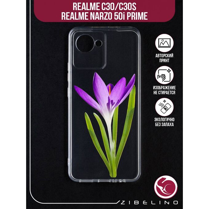 Чехол для Realme C30 4G, Narzo 50i Prime с защитой камеры, прозрачный с принтом ВЕСЕННИЙ КРОКУС (Реалми C30 4G, Нарзо 50i Прайм)