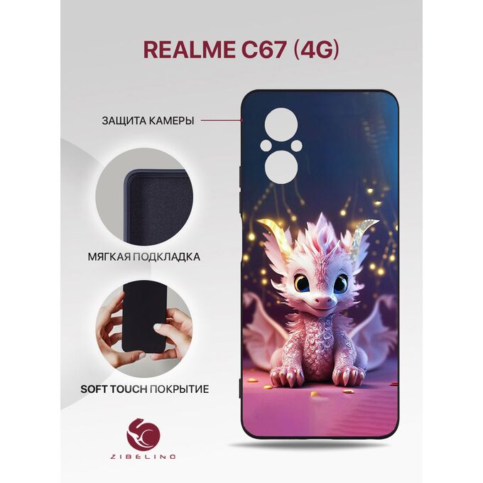Чехол Soft для Realme C67 (4G) с рисунком, с защитой камеры, с мягкой подкладкой из микрофибры, противоударный, черный с принтом ДРАКОША ИИ (Реалми С67)