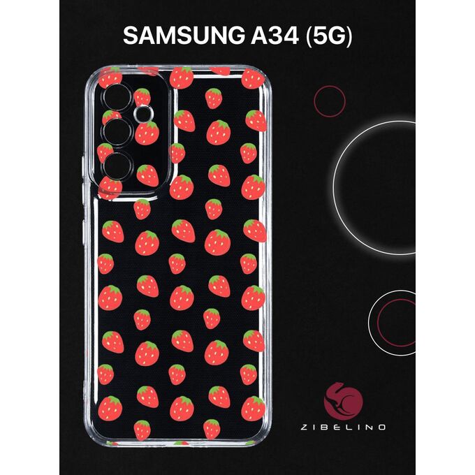 Чехол для Samsung Galaxy A34 (5G) прозрачный с рисунком, с защитой камеры, с принтом КЛУБНИЧКИ, Самсунг А34