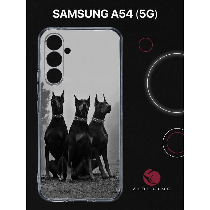 Чехол для Samsung Galaxy A54 (5G) прозрачный с рисунком, с защитой камеры, с принтом ДОБЕРМАНЫ, Самсунг Галакси А54