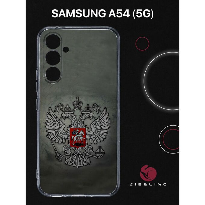 Чехол для Samsung Galaxy A54 (5G) прозрачный с рисунком, с защитой камеры, с принтом ГЕРБ НА ТЕМНОМ ФОНЕ, Самсунг Галакси А54