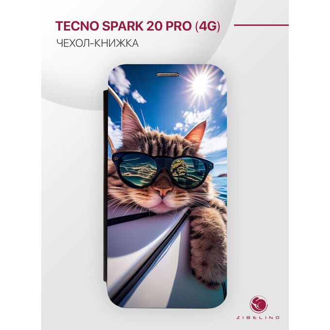 Чехол для Tecno Spark 20 Pro 4G с рисунком, защитный, противоударный, с магнитом, черный с принтом КОТ БАТОН НА ЯХТЕ, Текно Спарк 20 Про 4G