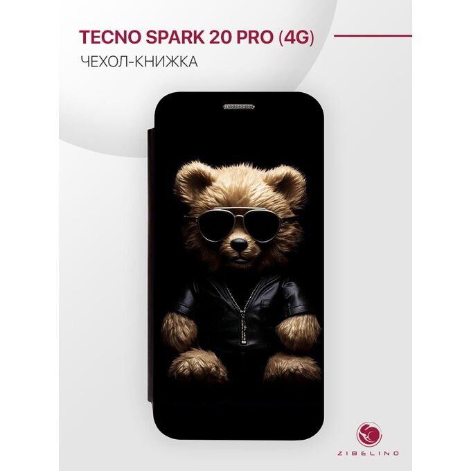 Чехол для Tecno Spark 20 Pro 4G с рисунком, защитный, противоударный, с магнитом, черный с принтом МИШКА КРУТЫШКА, Текно Спарк 20 Про 4G