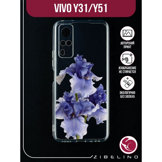 Чехол для Vivo Y31, Vivo Y51, Vivo Y53s 4G прозрачный с рисунком, с защитой камеры, с принтом ЦВЕТЫ СИНИЕ / Виво У31 Виво У51 Виво У53s 4G
