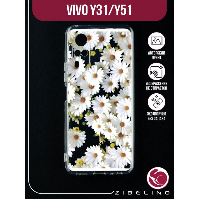 Чехол для Vivo Y31, Vivo Y51, Vivo Y53s 4G прозрачный с рисунком, с защитой камеры, с принтом РОМАШКИ / Виво У31 Виво У51 Виво У53s 4G