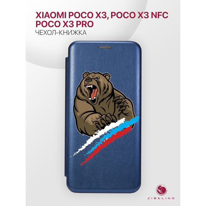 Чехол книжка для Xiaomi Poco X3, X3 Pro с рисунком, с магнитом, синий, с принтом ХОЗЯИН ТРИКОЛОРА