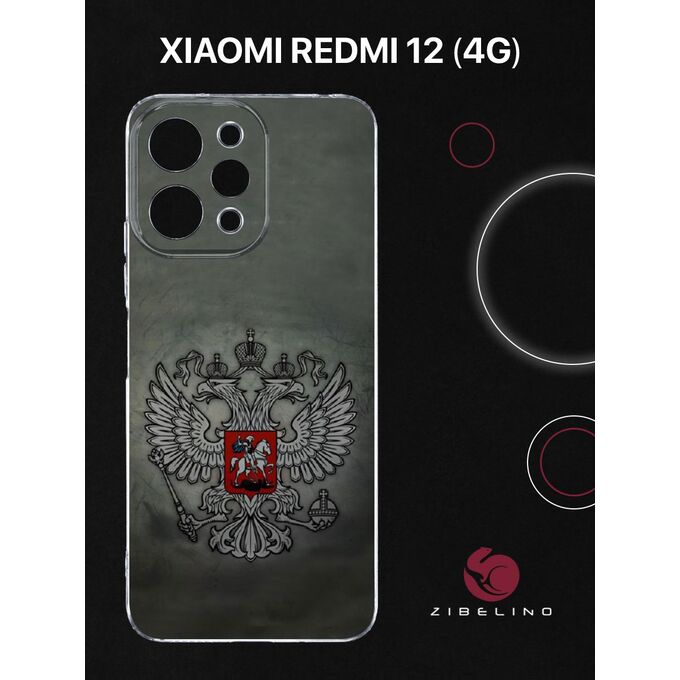 Чехол силиконовый для Xiaomi Redmi 12 (4G) прозрачный с рисунком, с защитой камеры, с принтом ГЕРБ НА ТЕМНОМ ФОНЕ, Сяоми Редми 12