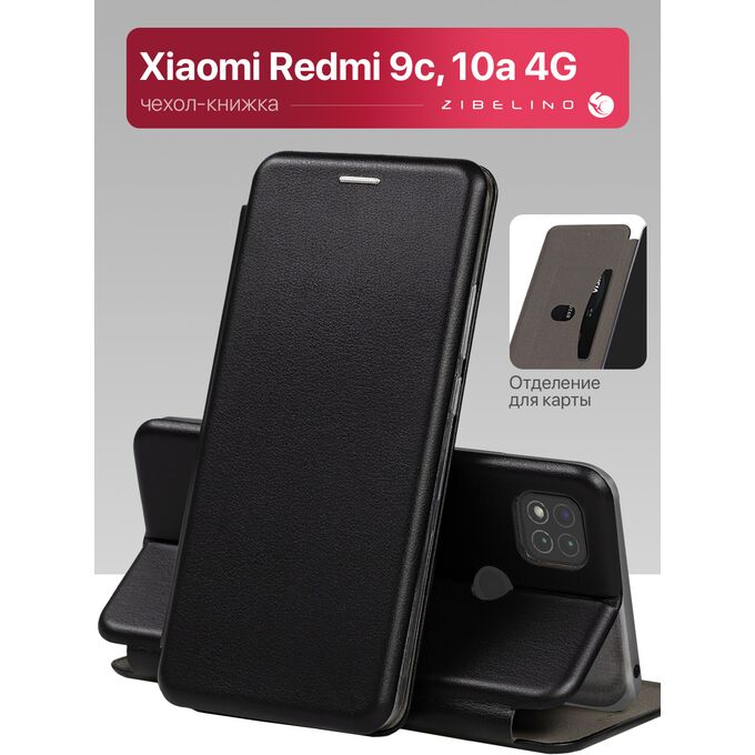 Чехол книжка Book для Xiaomi Redmi 9C, 10A противоударный, с магнитом, черный (Ксиоми Редми 9C, 10А)