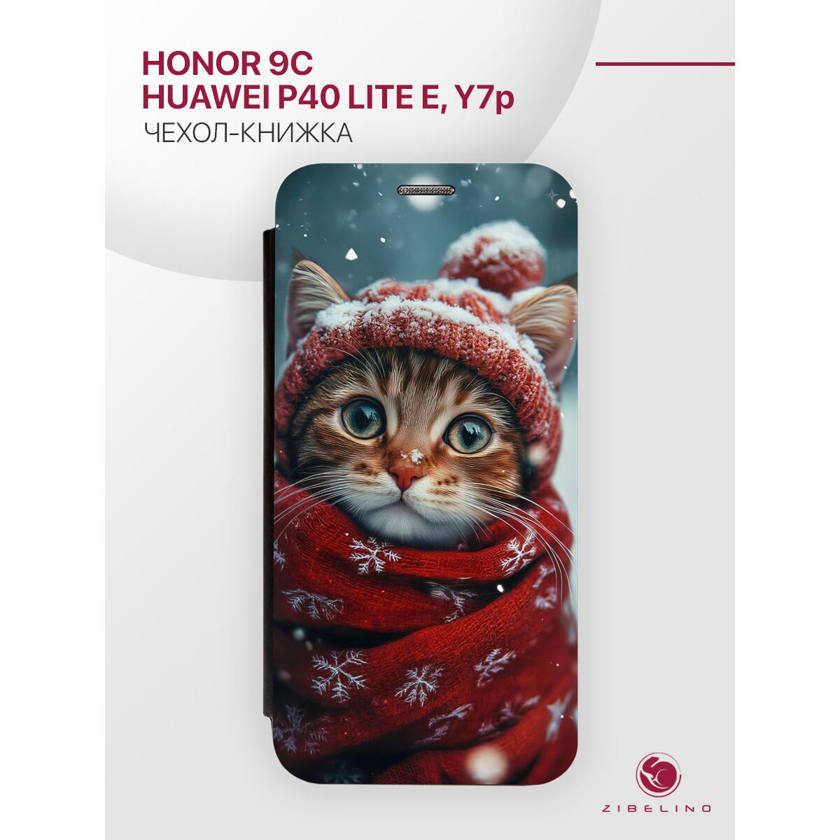 Чехол книжка Book для Honor 9C, Huawei P40 Lite E, Y7p с рисунком, с магнитом, черный с принтом КОТИК В ШАПКЕ (Хонор 9C Хуавей Р40 Лайт Е Хуавей У7Р)