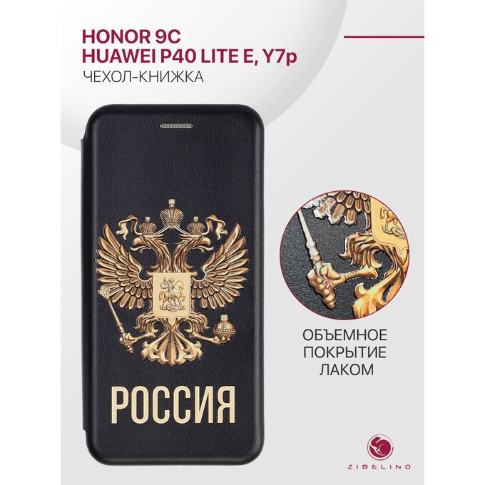 Чехол книжка Book для Honor 9C, Huawei P40 Lite E, Y7p с рисунком, с магнитом, черный с принтом РОССИЯ ОРЁЛ, с защитным лаковым покрытием (Хонор 9C Хуавей Р40 Лайт Е Хуавей У7Р)