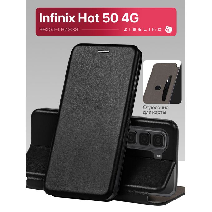 Чехол книжка Book для Infinix Hot 50 (4G) защитный, противоударный, с магнитом, черный (Инфиникс Хот 50 (4G))