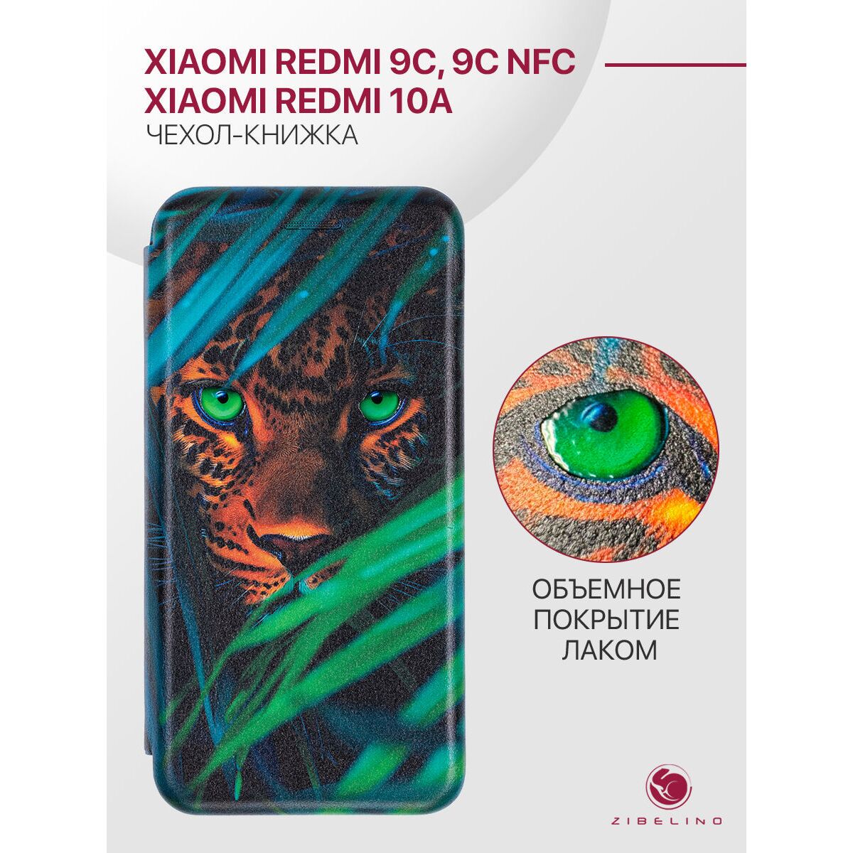 Чехол книжка Book для Xiaomi Redmi 9C, 9C NFC, 10A (4G) с рисунком, с магнитом, черный с принтом ЛЕОПАРД ЛЕС, с защитным лаковым покрытием (Ксиоми Редми Нот 9C NFC Редми Нот 10A (4G))