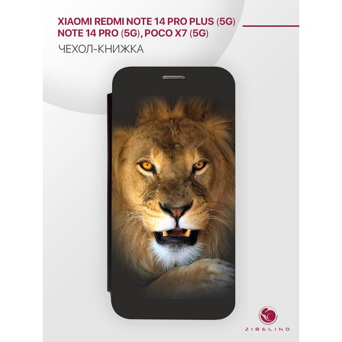 Чехол книжка Book на Xiaomi Redmi Note 14 Pro (5G), 14 Pro Plus (5G), Poco X7 (5G) с рисунком, защитный, с магнитом, черный с принтом ЛЕВ (Редми Нот 14 Про Плюс, Поко Х7)