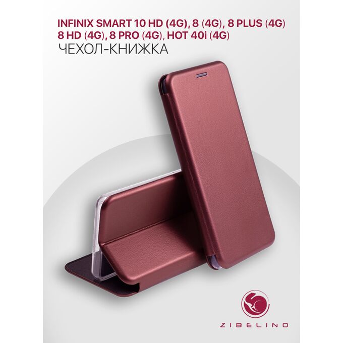 Чехол-книжка Book для Infinix Smart 10 HD (4G), Smart 8 (4G), Smart 8 Plus (4G), Smart 8 HD (4G), Smart 8 Pro (4G), Hot 40i (4G) с магнитом, с карманом, бордовый (Инфиникс Смарт 10 8 Плюс Про HD Хот 40i)