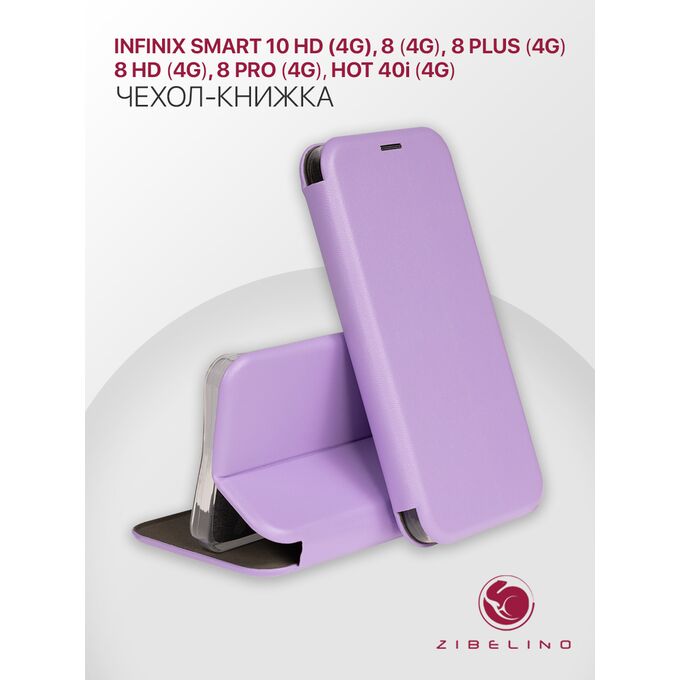 Чехол-книжка Book для Infinix Smart 10 HD (4G), Smart 8 (4G), Smart 8 Plus (4G), Smart 8 HD (4G), Smart 8 Pro (4G), Hot 40i (4G) защитный, противоударный, с магнитом, сиренево-лиловый (Инфиникс Смарт 10 8 Плюс Про HD Хот 40i)