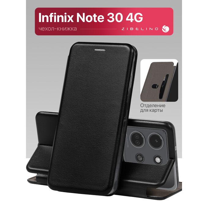 Чехол книжка Book для Infinix Note 30 (4G) противоударный, с магнитом, черный (Инфиникс Нот 30 4G)