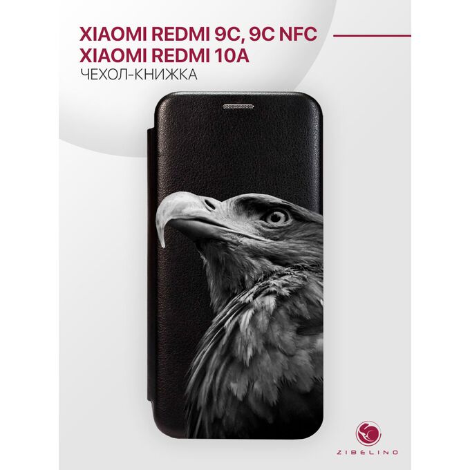 Чехол книжка Book для Xiaomi Redmi 9C, 10A с рисунком, с магнитом, черный, с принтом ОРЛИНЫЙ ВЗГЛЯД